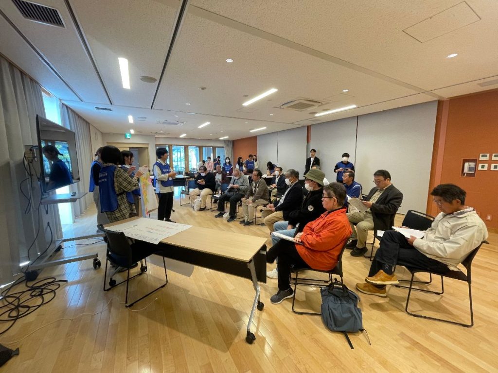 2025年10月末、鹿折まちづくり協議会(以下:まち協)と都立大学によるまちの視察+交流会+発表会を行った。まち協のアドバイザーである磯田芳枝さんと共に、都立大学の市古ゼミ学生は議論を重ね、学生らしい問題意識を持ち、鹿折のまち視察に臨んだ。「避難施設班」は2025年9月のカムチャッカ地震対応について考え、市の危機管理課から垂直避難ビルの説明も受けた。「JR廃線跡地班」は鹿折小学校や市街地などいくつかの拠点の視察をした。「復興商店街班」は土地区画整理事業に伴うまちと商店街の復興経緯について商店主にヒアリングを行った。視察後は鹿折の食材をキッチンスタジオで全員で調理し、日本酒と共にまんぼうの刺身やメカジキのハラスなどの地元らしい食材をお腹いっぱい食した。翌日は、学生による班ごとの発表とまちづくり協議会との意見交換を行いその意見を持ち帰り、再度研究発表の機会を設けることになっている。まち協の皆さんからは、学生からの素直な意見や思いには刺さる言葉がたくさんあり、もっと多くの市民の皆さんに聞いてもらいたい、私たちだけではもったいないという感想があった。
