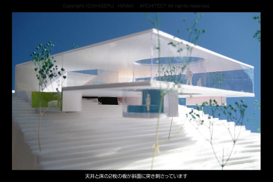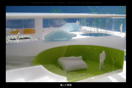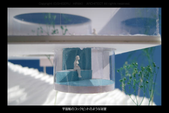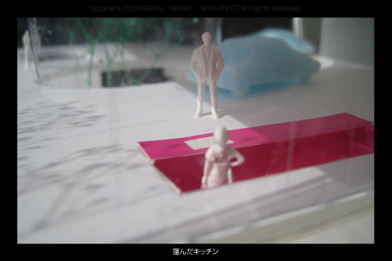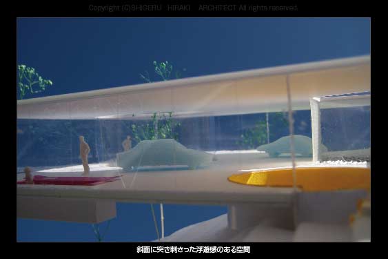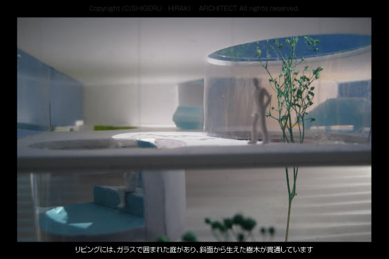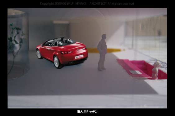 2008年のスタイルハウジングエキスポに出展した別荘・シェアハウス案。リビングに車を乗り入れ「車と過ごす週末」をテーマにした。車を整備、洗浄するピットから何もないリビングに車ごと入り、樹木に囲まれたリビングで車と1体1で過ごすことができる。森に囲まれたガラスハウスでもある。眺望の妨げになる間仕切り壁は設けず、リビングに開いた穴(Pit)に下りていくとそこが浴室や寝室、キッチンとなる。車や自然を愛するクライアントのための別荘案として、週末のシェアハウスとして実現したい提案となった。
