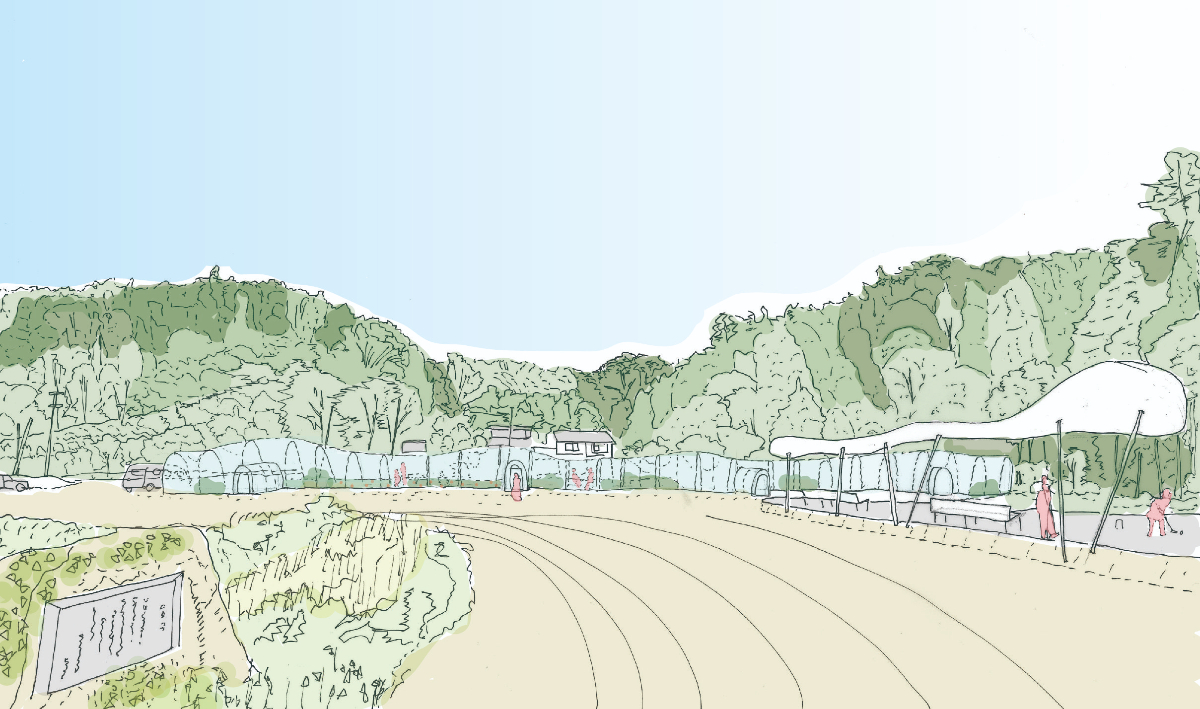 東日本大震災でも、熊本地震でも、能登半島地震においても、その地に入ると部外者である私は、残された被災地の風景の美しさに感動を覚えることがある。確かにそこには建物や農地、まちと人々の生活に背後の自然が重なった美しい風景があった。風景は、人それぞれで、遠くの山や森だったり、海や川だったり、田や畑、商店街、祭りや神社など様々である。それは、いつしか見慣れた風景となり、災害などで突然今までの生活が失われて初めてこれまで生活を送ってきた風景を思い出す。災害発生直後、人々の生活環境を維持し、生活の復興を目指すこと、それは我々建築家の役目の一つである。しかし、人々が求める復興のかたちは、コンクリートの団地の中のコミュニティではない。復興へ人々が進み始めたとき、風景や景観の復興を掲げ、コミュニティへ関与するのも建築家の役目だと思う。そのヒントがここにはある。気仙沼鹿折地区の人々は、災害を乗り越え、次のまちづくりに取り組んでいる。このプロジェクトは、そんな方々とのお付き合いの中で生まれてきた。私たち部外者ができることには限りがあり、対話を重ね、スケッチを描いた。「ゆっくり急げ」(ラテン語:Festina lente フェスティナ・レンテ)は、ヨーロッパで古くから用いられている格言で、「良い結果により早く至るためにはゆっくり行くのが良い」、または「歩みが遅すぎても求める結果は得られない」を同時に意味する言葉(Wikipedia)であるが、主体は地域の方々であり、建築家としての地域の方々をどうエンパワーメントできるのか、迷いながら進めている。