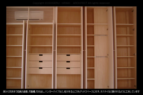建築に不可欠なものの一つに家具がある。既製品をうまく組み合わせる方法もあるが、空間の寸法とコンセプトに合わせて特注家具のデザインにも力を入れている。 シンプルな空間の中で時には装飾的な建築の要素となる。人間に触れる一番近い存在だけに意欲的に提案している。